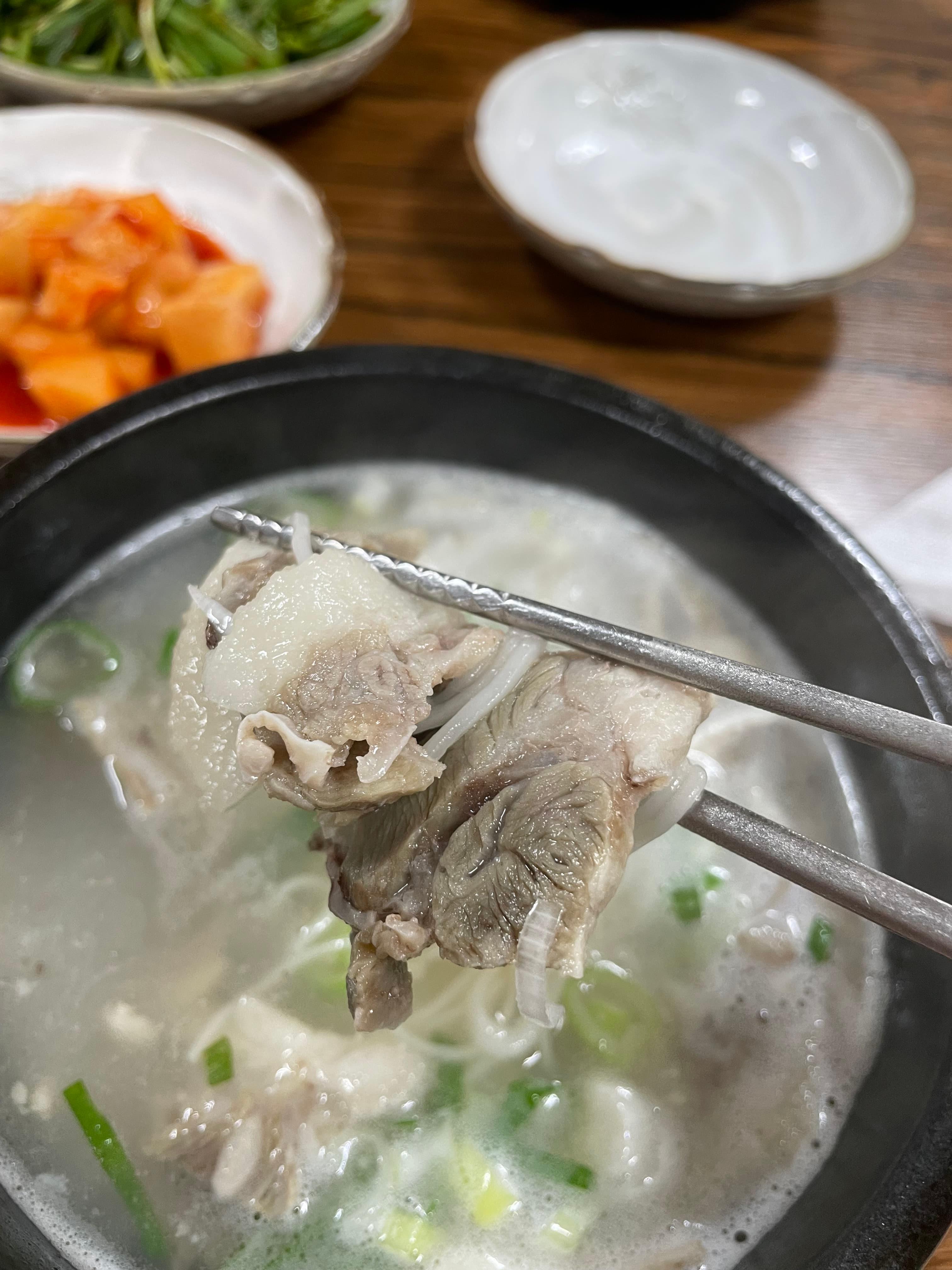 일단 국물은 뽀얗고 맑아서 군더더기 없이 깔끔한 맛이었습니다. 특히, 잡내가 없었고 담백한 국밥으로 아주 훌륭했습니다. 먹으면서 막걸리 마시던 손님이 계셔서 같이 마시면 더욱 더 맛있게 먹을 수 있었을 것 같았지만 운전을 해야해서 아쉬웠습니다.