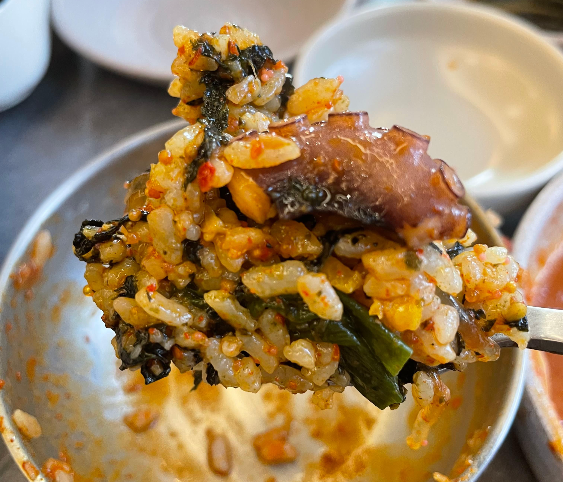 양념 국물과 밥과 비벼서 갈비, 새우, 낙지와 함께 먹었더니 맛 두 배, 행복 두 배였습니다. 정말 맛있었습니다. 공기밥 시켜서 같이 먹는걸 추천드립니다. 순식간에 공기밥과 낙갈새를 해치우고나서 볶음밥을 필수라 하여 볶음밥 1인분을 주문했습니다. 필수라고 하니 먹어봐야겠죠?